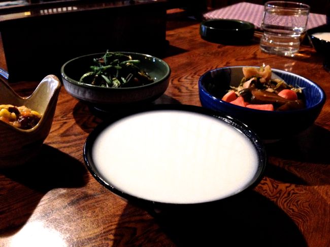 その間、こっちは漬け物、山菜を肴にどぶろくです。