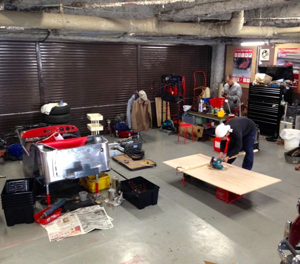 by kaneko投稿日: 2015年2月15日ローバーV8 ウォーターポンプ専門店 このブログ見てMG RV8のウォーターポンプを頼まれたんですが・・・ 専門ショップに頼んだのに・・・しかもそっくりだけどやっぱり違う。シャフトの長さが。 ローバーV8のウォーターポンプって、いったい何種類あるんでしょうか? 結局またしても組み直しです。 Amiさんもうちょいお待ちください。 今日のお休みに頭領のAoちゃんにお願いして、A35が出て空いたスペースでコンパネのカット。 セブンのシートベースを切り出し中です。 赤の生地も来たから大分完成の姿が見えて来たな~。