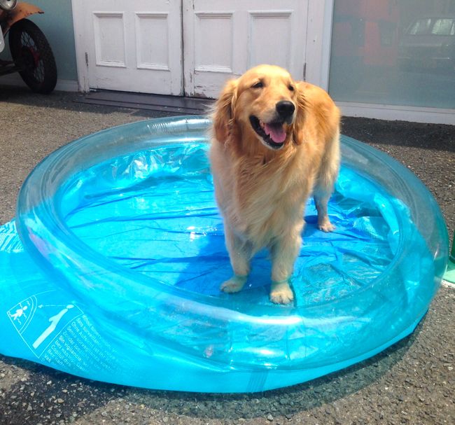 by kaneko投稿日: 2015年6月2日6月2日 朝は近所で追突事故。 反対車線は工事渋滞で用賀インター付近はむちゃくちゃな混雑でした。 暑いので、昔ウィッチョ用に購入してあったプールを引っ張りだして水を張ってみました。 マーニがどんな反応示すか見ものでしたが・・・割と普通に喜んでました。 暑い日には出してあげましょうかね。