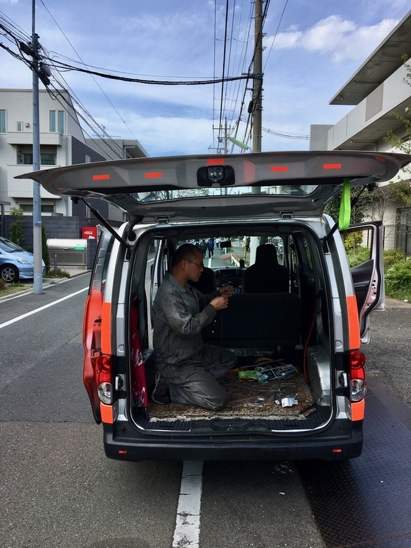 明日の名古屋出発に向けてkuniがNV200の改造を始めてます。