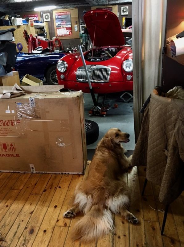 フルリストアMGAのインテリア用のキャッピングのクロス貼り直しが終わって内装屋さんから帰って来ました。