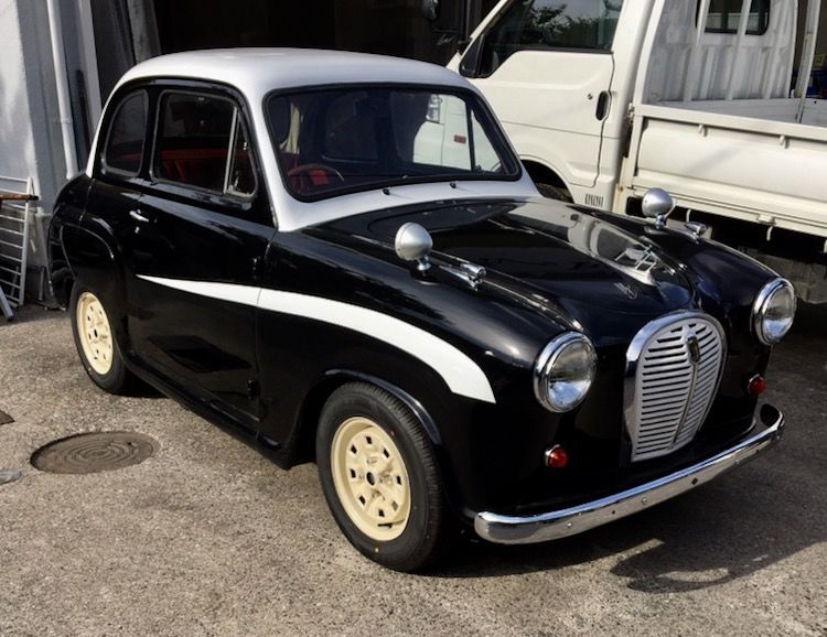 屋根とストライプが塗りあがったということで喜び勇んで取りに行ったオースチンA35・・・