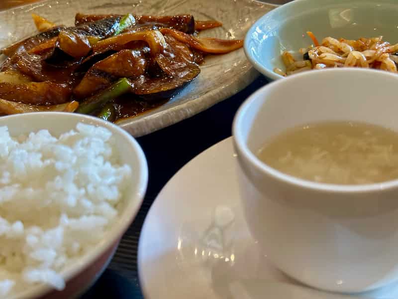 ワタクシは今日の定食1番の茄子味噌炒め定食をいただきました。