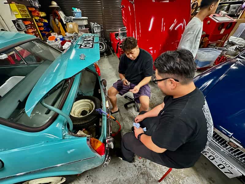 今日は忙しかったね、最後に車検のMGAを納車して閉店です。