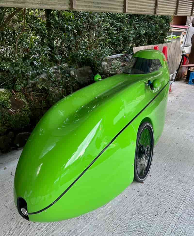 短い夏休みで伊豆に行ってる隊長から、、、宿の軒先にこんな自転車が!トライク?エンジン付き??