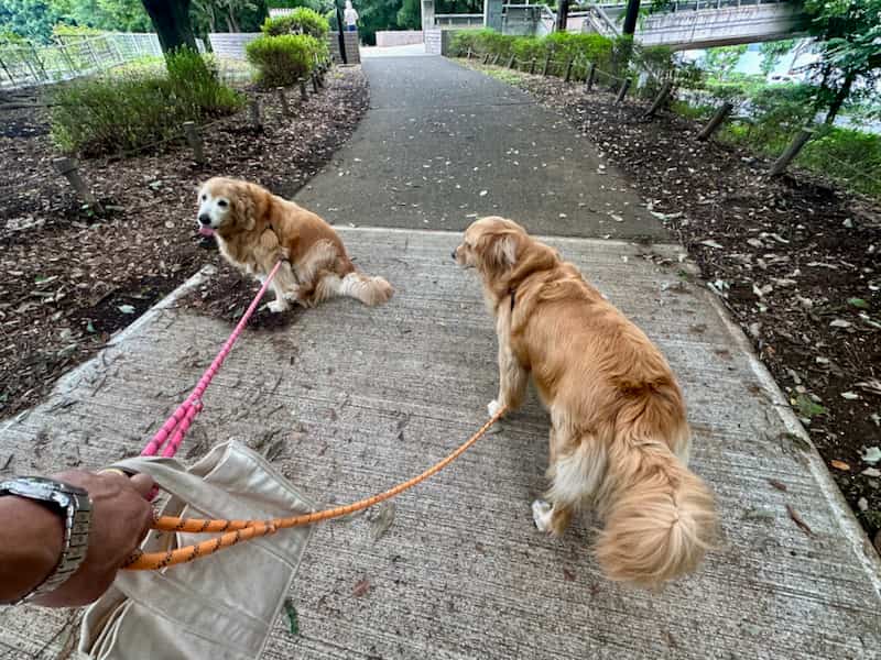 留守中にもKちゃんが店に来て散歩までしてくれてたのに、ハンガーストライキのうえげりぴーの2匹。
