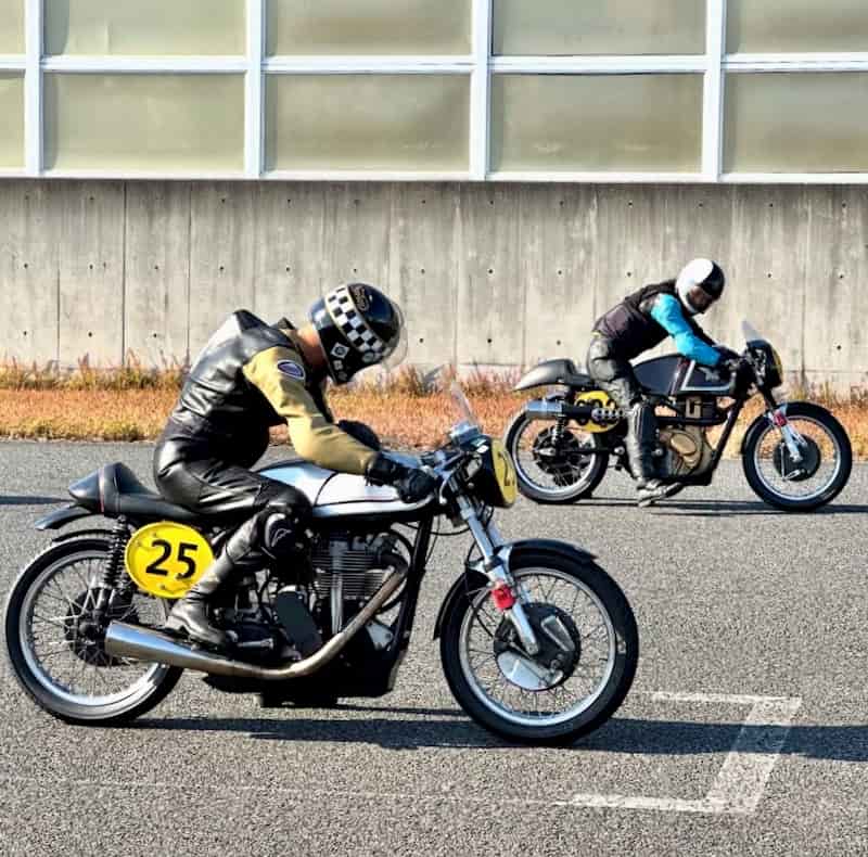 2輪スーツでT72に乗り込んでますがキツキツ。