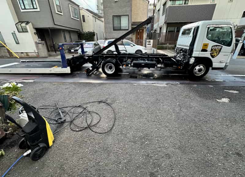 北陸旅で塩カルとか浴びてるんでこのタイミングで高圧洗浄中の積載車。