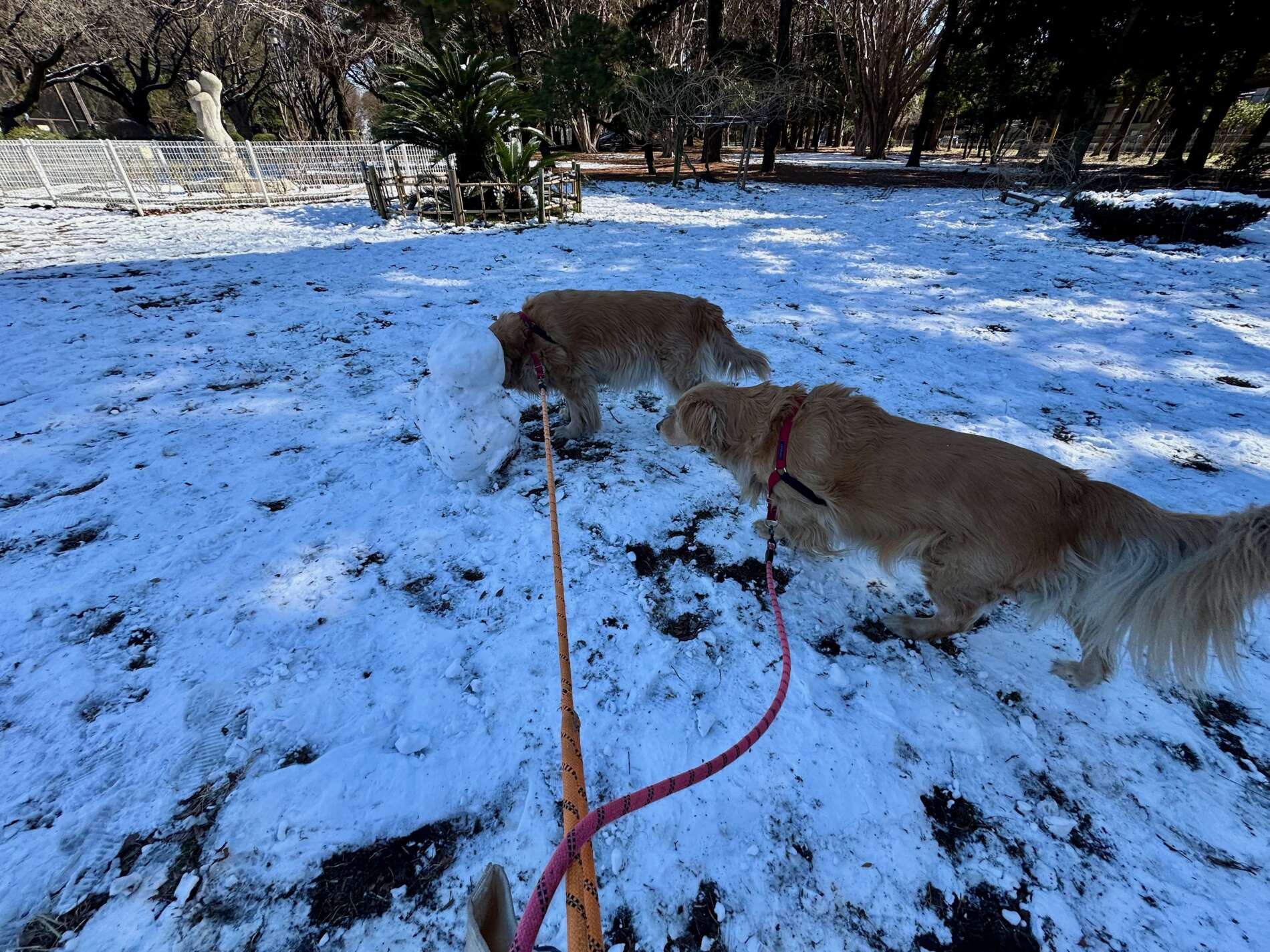 誰かが作った雪だるまにわんわん言ってるフィーナ。