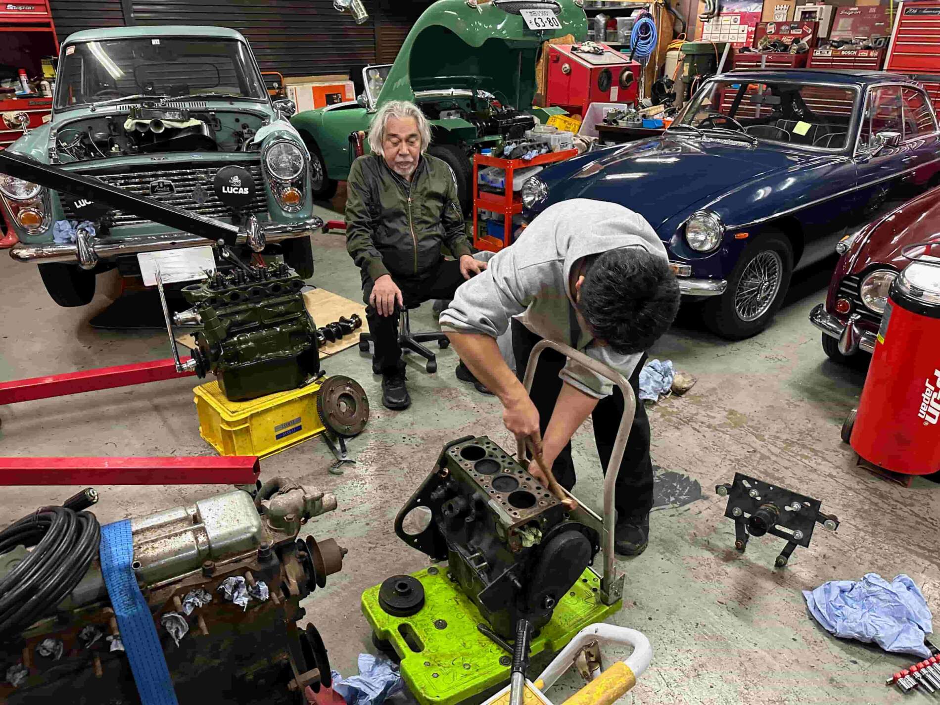 このエンジンのバラシ作業ですが勉強になるから教わりながらやってます。
