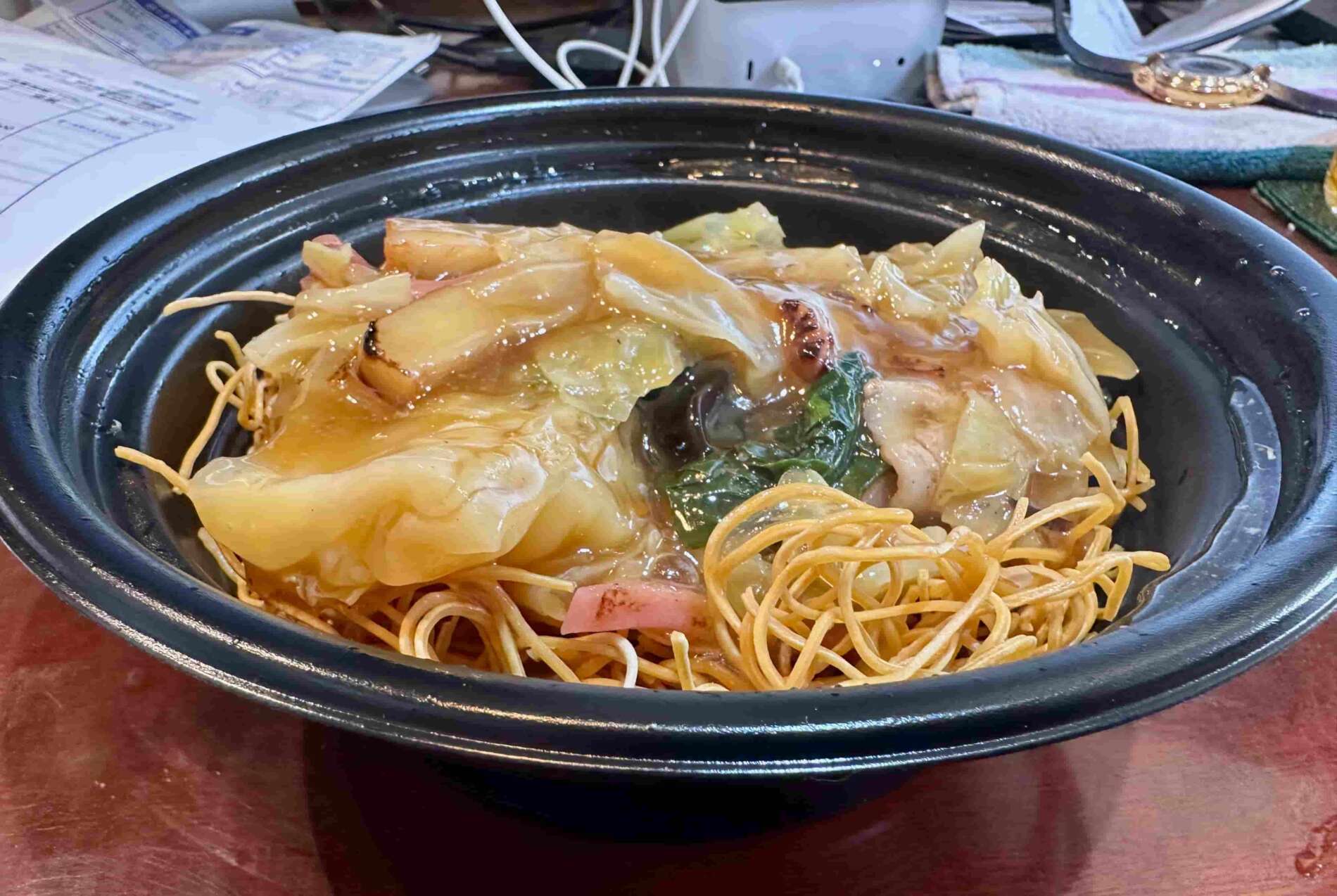 急遽、味の民芸に変更して皿うどんです、まぁいつも通りで熱々で美味しゅうございました。