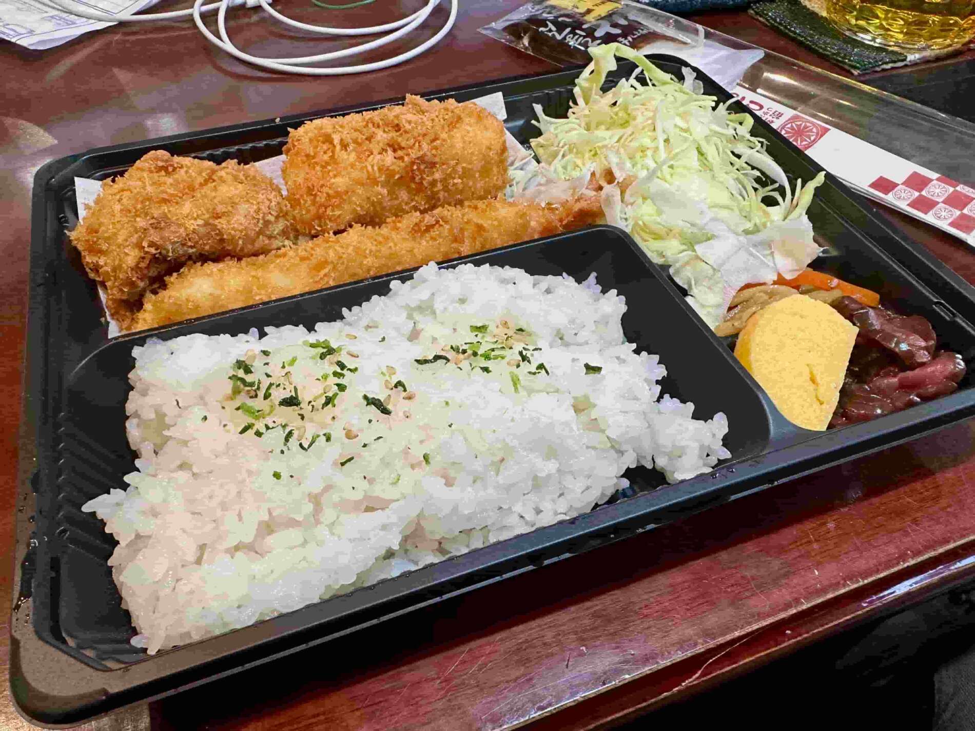 ワタクシは抜けがけのミックスフライ弁当、うまし!