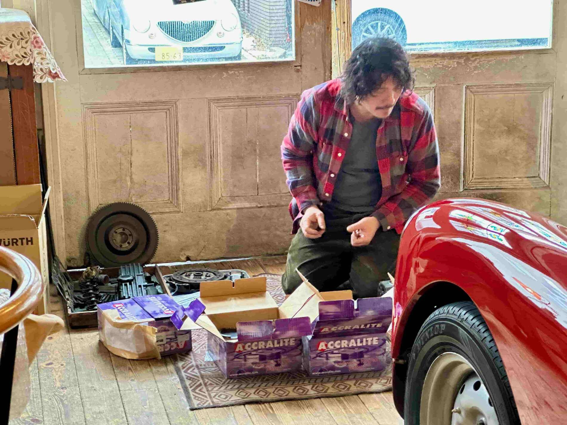 今回はレーシングアングリアのことで部品の打ち合わせです。