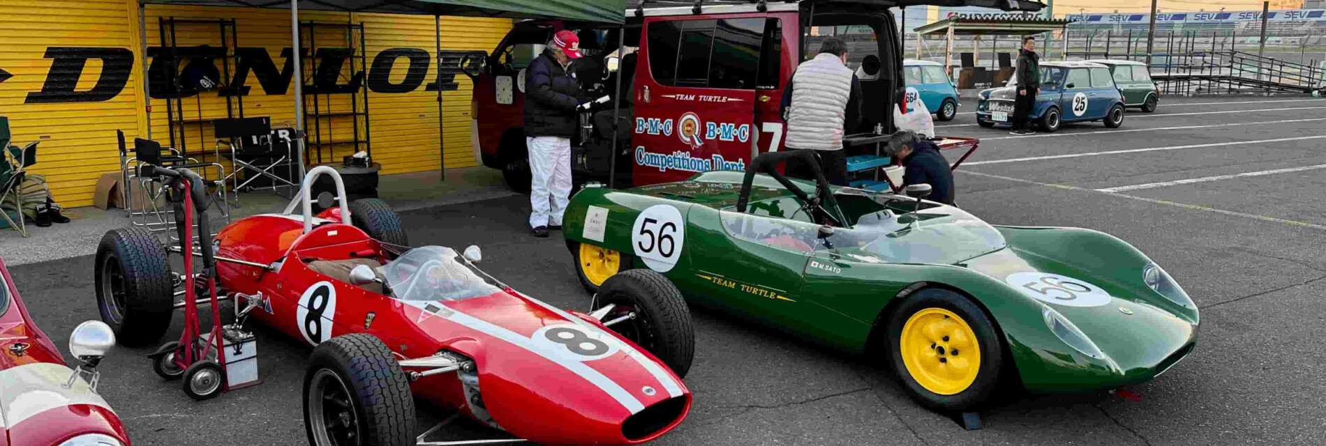 タートルさんのお誘いでスーパーバトルofミニ第1戦、筑波サーキットのヒストリックフォーミュラクラスに参加させていただきました。いつも主催者はレースに集中し切れないところ、タートルさんが搬入からレースサポートまで、、、F1 …