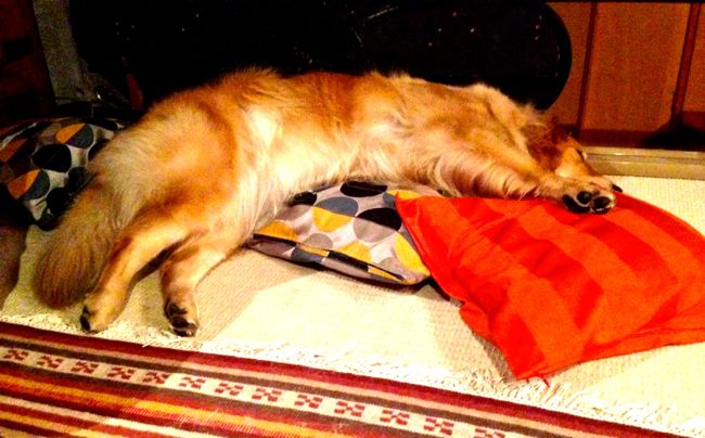 マーニ、実は日本酒好き。 昨日も水で薄めてやるとうまそうに・・・ そしてこんなかんじですやすやと 飼主に似たんでしょうか?