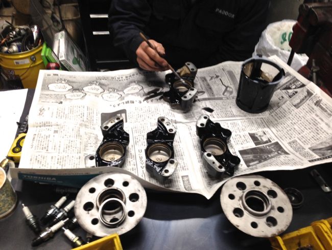 GT6のキャリパー、ブラストも終わってペイント中。 この後組み上げます。 Ryoちゃん、黒じゃなくてゴールドとかブレンボみたいな赤が良かった? ディスクローターも新品か迷ったんですがもう一回だけ研磨で行く事が決定。 さっ …