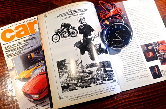 さっきサイドウエイトロフィの広告が出ている明日発売のカーマガジンが届きました。 目次の次のページ。。 頑張った甲斐があります。 後は当日を祈るのみですね。 上の広告の隣に映っているタコメーター。 その昔のSMITHクロノ …